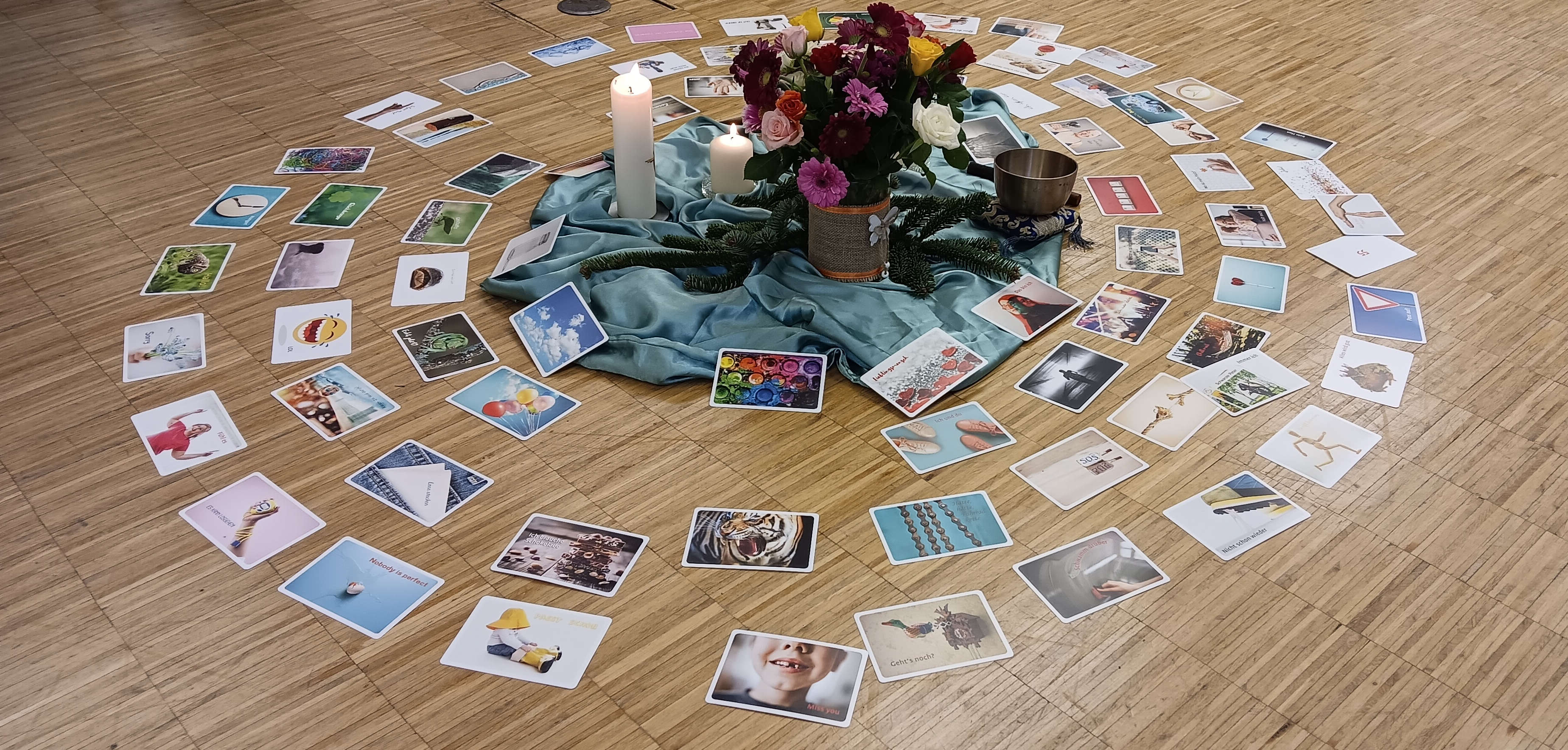 Die oben abgebildeten Postkarten sind ein Beispiel für gut arrangierte Gesprächsanlässe. Alle Anwesenden waren den methodischen Ansätzen gegenüber aufgeschlossen und zeigten im Miteinander keine Berührungsängste. Die Neuen fühlten sich gut aufgenommen und waren für den Austausch untereinander sehr dankbar.